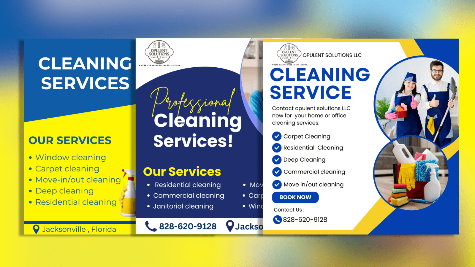 I’ve worked with businesses across industries such as cleaning services, home care, insurance, and credit repair, delivering professional marketing assets that align with real business needs.