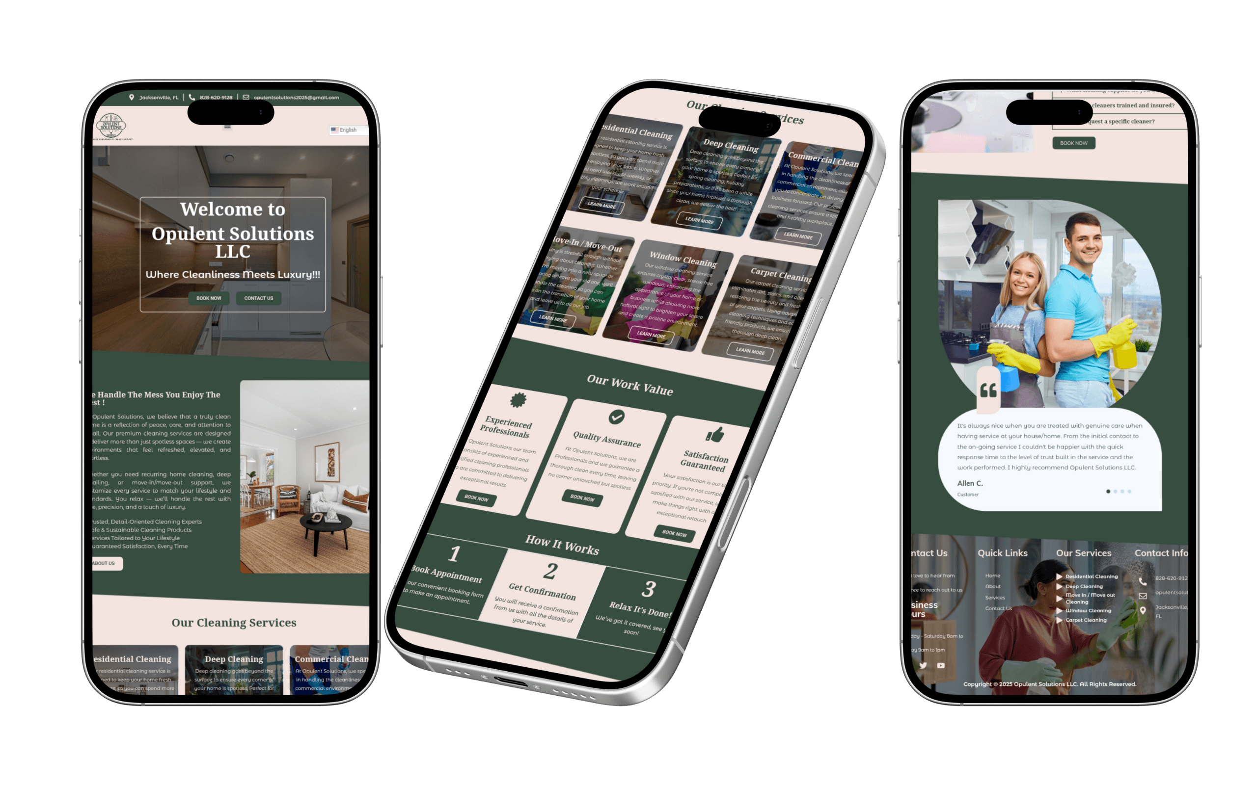 Clean and modern layout, Mobile-first consideration, Clear service sections, Strategic call-to-action placement, Consistent branding across pages
